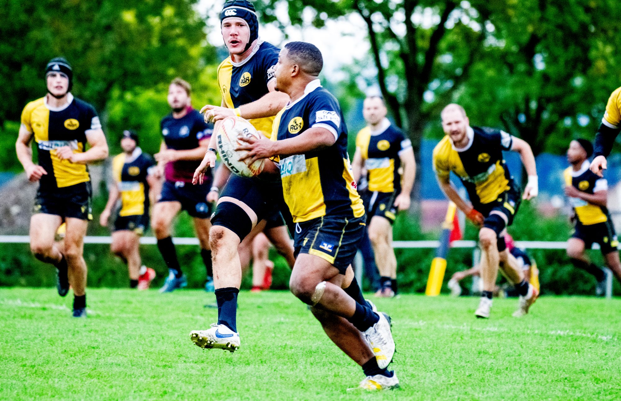 In Durchgang zwei zeigte sich dann die ganze Routine der „Schwarz-Gelben“ und die in dieser Phase auf das Feld geschickten frische Kräfte fügten sich nahtlos in das vorgegebene System ein. Los ging es wenige Minuten nach Wiederanpfiff: Innen-Drei-Viertel Vincent Holpp legte das Ding unter den Stangen ab und die Erhöhung von Lukas Kästner war reine Formsache – 7:33. Zwar brachte ein gut gespielter Angriff die Gastgeber auf 14:33 heran. Doch danach drehten die RCR’ler wieder auf und nun schienen alle Dämme der WSC-Defensive zu brechen. Zunächst war es Außen-Drei-Viertel Audrez Dassis, der erfolgreich ablegen konnte, danach krönte Teswin Jacobs seine tolle Leistung mit seinem dritten Versuch. Danach konnte sich 1.-Reihe-Stürmer Johannes Husselmann erfolgreich durchsetzen, ehe Philipp von Ochsenstein zum zweiten Mal im Malfeld ablegen konnte. Den Schlusspunkt setzte Lukas Kästner mit seiner Ablage zum zehnten RCR-Versuch. Er konnte nach den erfolgreichen Versuchen seiner Mitspieler in der zweiten Halbzeit vier weitere Erhöhungen verwandeln und führt mit deutlichem Vorsprung die Liste der Spieler an, die die meisten Punkte in der Liga erzielen konnten.
