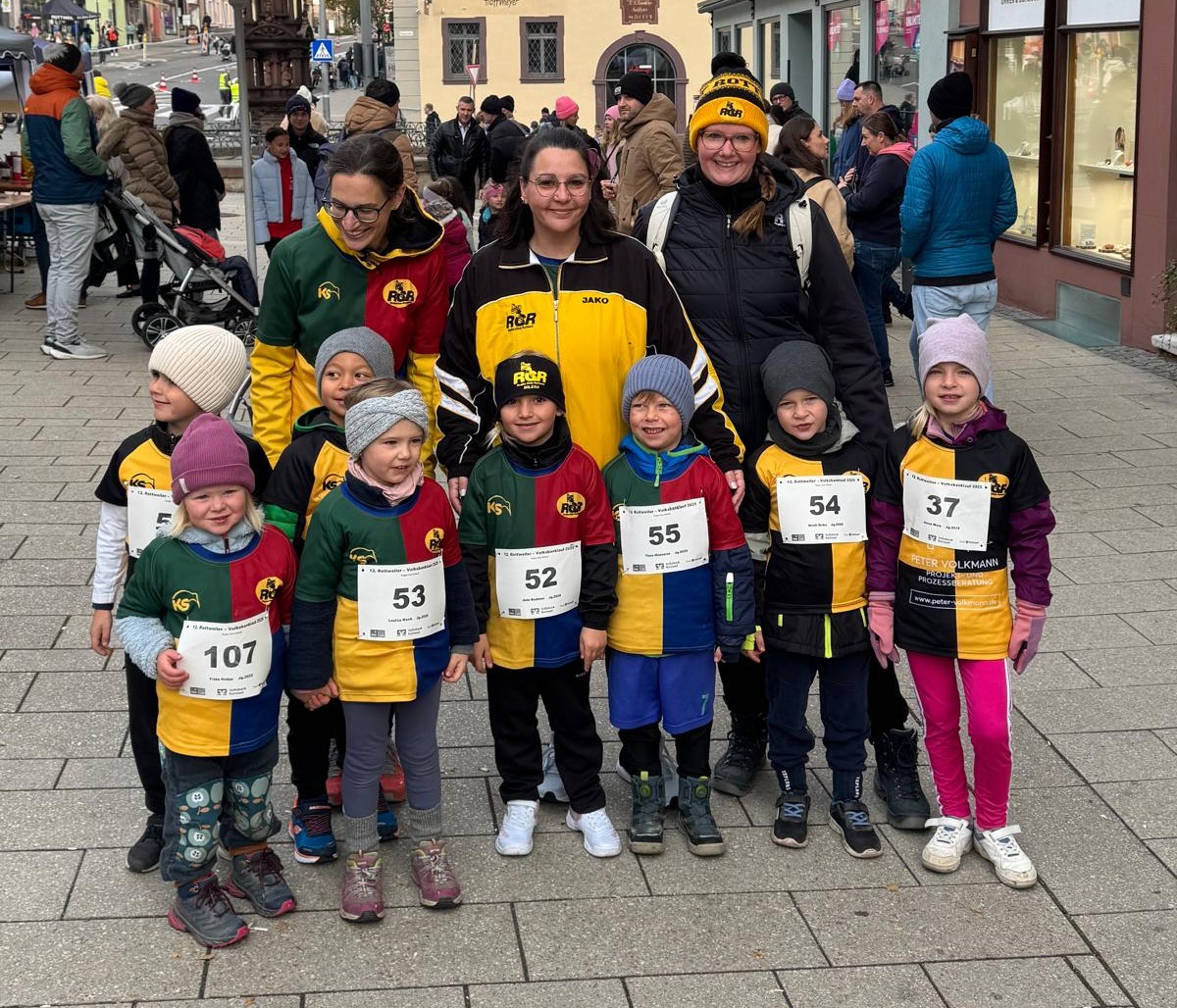 Während die älteren Teams in Heidelberg um Punkte kämpften, gaben die Jüngsten beim Stadtlauf in Rottweil alles. Um 10:30 Uhr fiel der Startschuss für den Bambinilauf – mit roten Wangen, schnellen Beinen und einem breiten Lächeln liefen die acht U6er über die Ziellinie. Der Stolz war groß – bei den Kindern, Eltern und Trainern gleichermaßen. Für viele war es das erste sportliche Erlebnis außerhalb des Rugbyfeldes, und sie meisterten es mit beeindruckender Begeisterung.