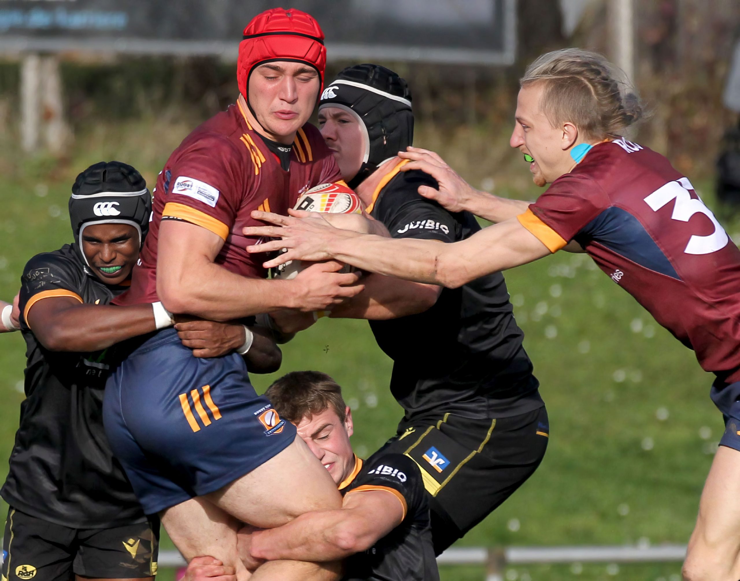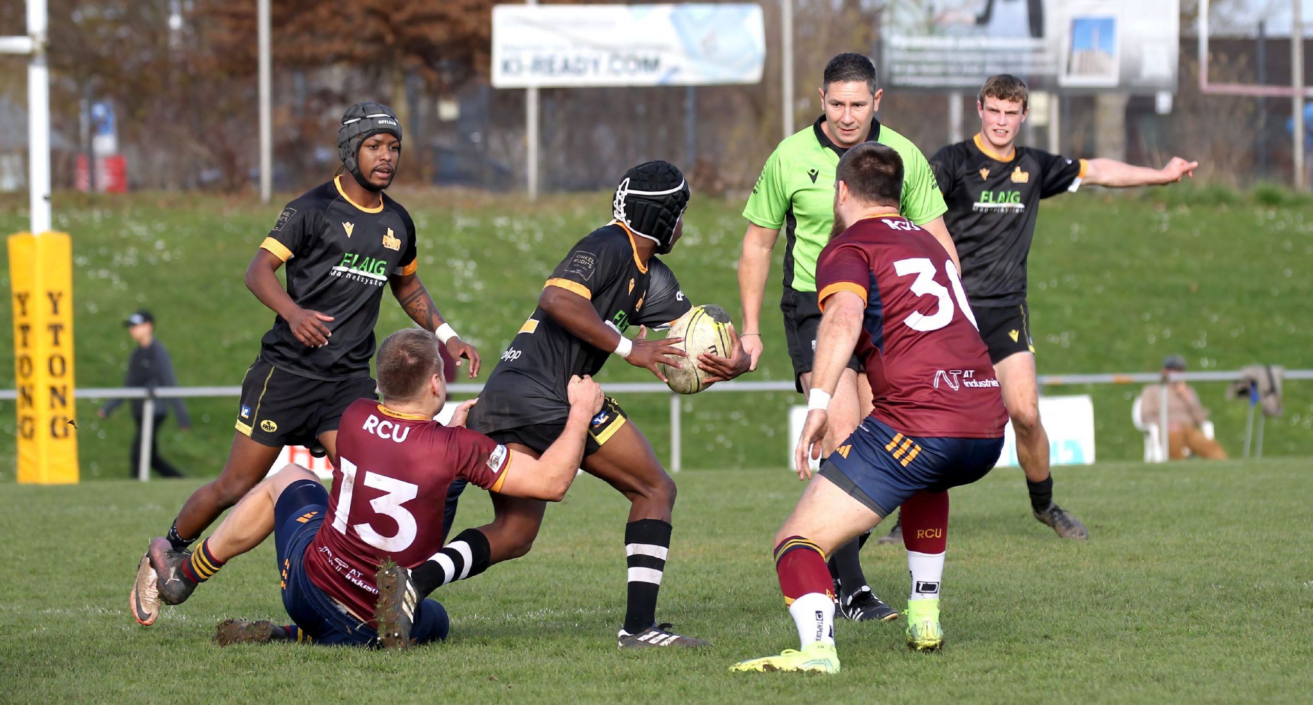 Der RCR erwischte den besseren Start und ging durch einen Straftritt von Verbinder Lukas Kästner früh in Führung. Unterföhring antwortete jedoch prompt: Nach dem Versuch und der Erhöhung gingen sie mit 3:7 in Führung. In der hart umkämpften Anfangsphase, in der die Bayern mit viel Einsatz immer wieder nach vorne drängten und sich im Viertelfeld der RCR’ler festsetzten, ließen sich die „Schwarz-Gelben“ davon jedoch nicht aus dem Konzept bringen.