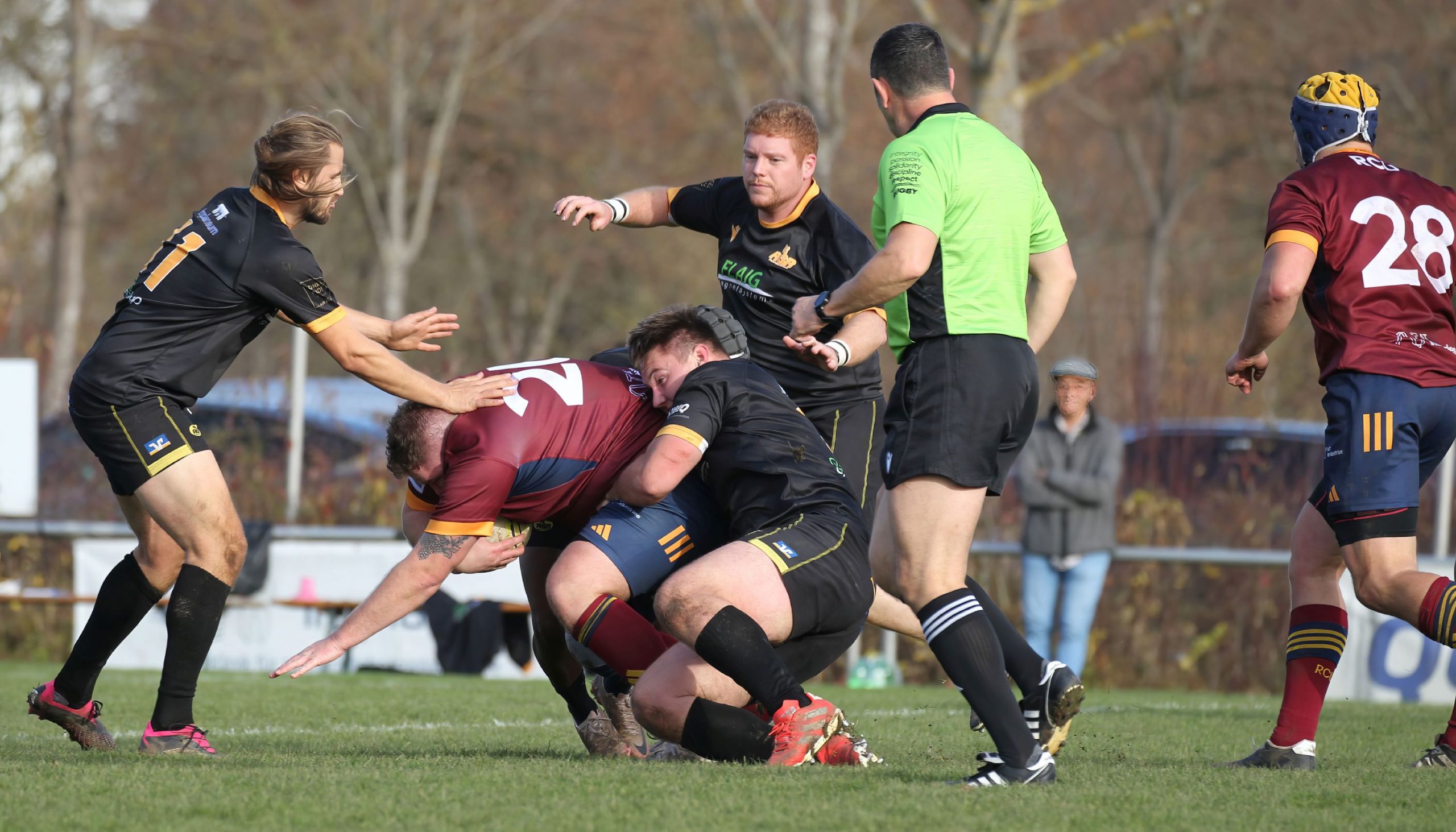 Die RCR-Dominanz war über die gesamte Spieldauer deutlich. Die Kurpfälzer kamen nur selten – kleinen Strohfeuer gleichend – mit allen ihnen zur Verfügung stehenden Kräften ins Viertelfeld der „Schwarz-Gelben“. So konnten sie schließlich auch einen Ehrenversuch erzielen.